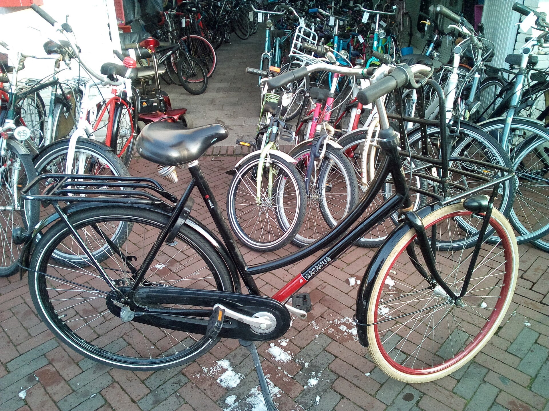 De fietsen zijn alleen af te halen in de winkel.